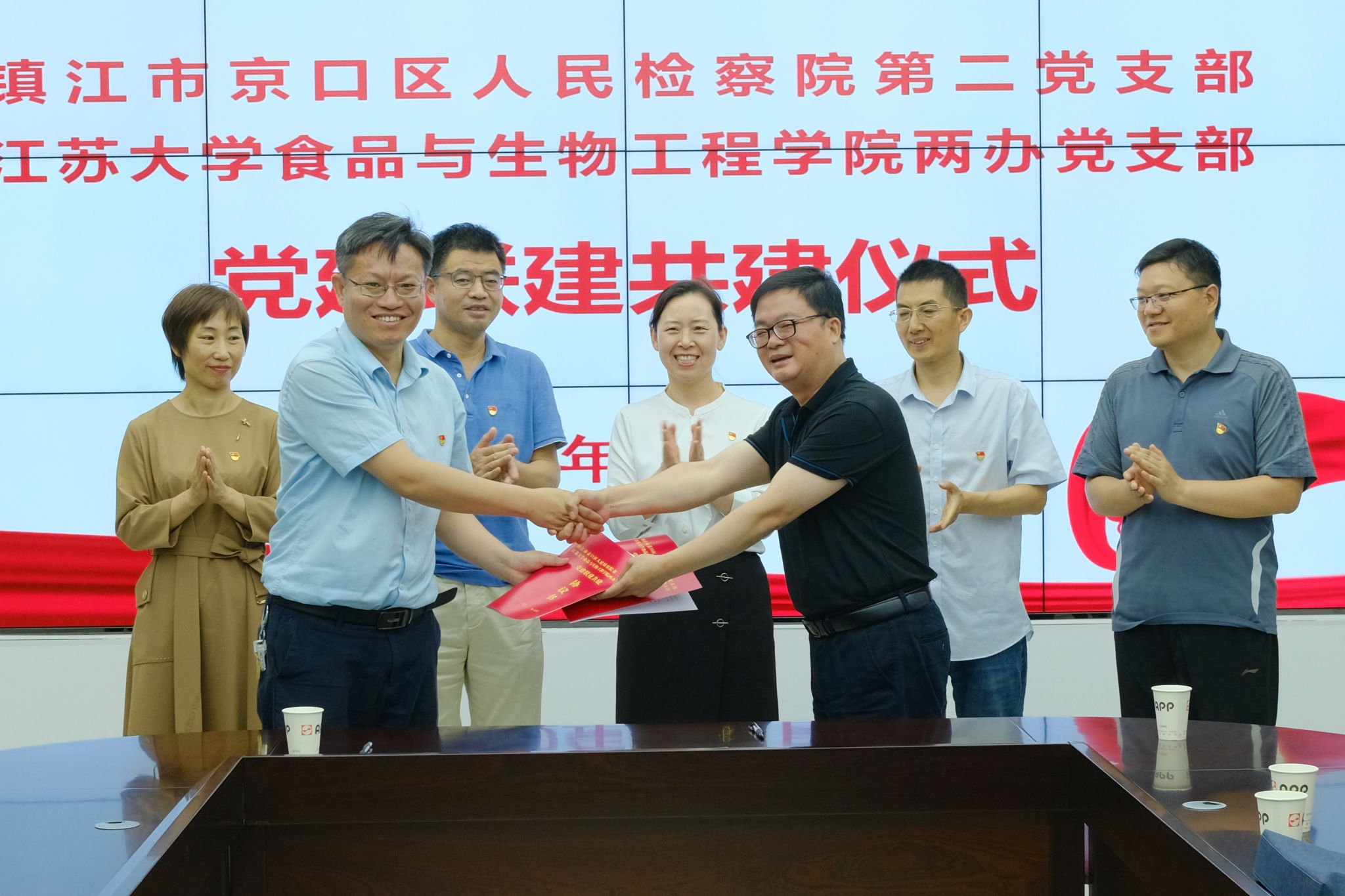 为进一步探索党建工作模式,拓展校地合作新领域,巩固拓展党史学习教育成果,6月8日,食生学院两办党支部与京口区检察院第二党支部签署校检合作共建协议。京口区检察院党组成员、政治部主任、党总支书记杨钰,党总支副书记、第二党支部书记张波,bat365正版唯一官网党委书记万由令,两办党支部全体党员及师生党员代表参加签约仪式。