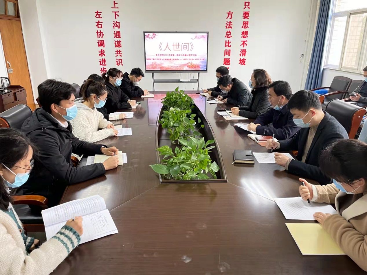 331日,食生学院党委举办2022年第一期读书思廉分享交流会,本期交流会的主题是“沉浮人世间,长扬真善美——读《人世间》”。院党委书记万由令,食品物理加工研究院教工党支部、生物技术教工党支部和2019级硕士生党支部的党员,2021级本科生学生代表参加了此次读书会,读书会由食品物理加工研究院教工党支部书记任晓锋主持。