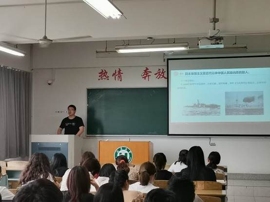 党课围绕“日本帝国主义是近代以来中国人民最凶恶的敌人”、“为什么说中国共产党是拯救中华民族存亡,引领中华民族伟大复兴的中流砥柱”和“弘扬抗战精神,实现中华民族伟大复兴”等三个方面展开。首先,丁煜从日本国情,历史情况、阶级矛盾以及侵华目的等四个角度揭露了日本侵略者在侵华战争中所犯下的滔天罪行。接着,通过对比国民党的片面抗战路线和中国共产党的全面抗战路线,展现了中国共产党人高举民族统一战线的旗帜,在敌后战场领导游击战,成功牵制了日军在正面战场的战斗力,成为了拯救中华民族存亡的中流砥柱。最后,丁煜老师希望同学们弘扬以爱国主义为核心的民族精神、抗战精神,全心全意为人民的爱民、为民精神,以及不怕牺牲,奋勇杀敌的拼命精神,高举爱国主义旗帜,认真学习,刻苦钻研,努力践行社会主义核心价值观。