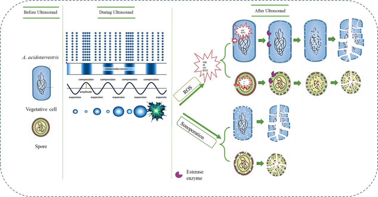 Figure 1. Mechanisms of A.acidoterrestris spores and vegetative cells inactivation after using ultrasound treatment