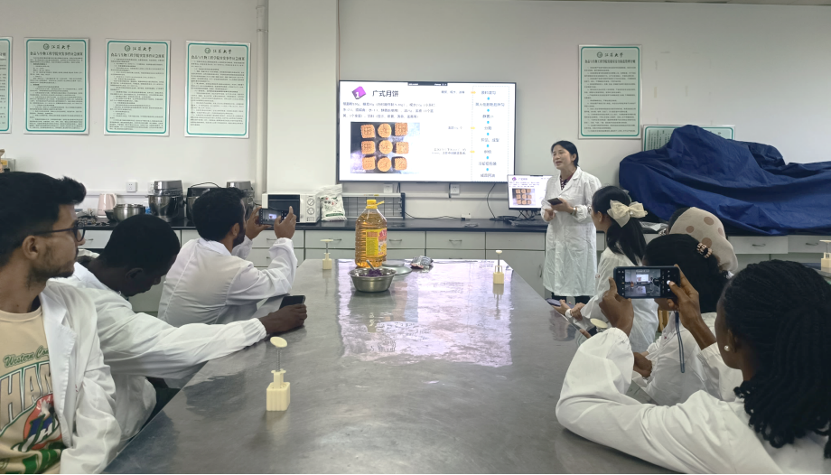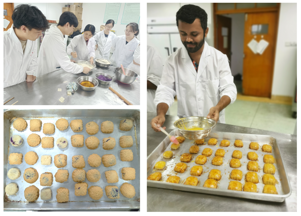 为弘扬中华优秀传统文化,增进中外学生交流,让外国留学生感受中秋文化内涵,9月23日下午,bat365正版唯一官网在食品楼412烘焙室组织开展了“做月饼 话中秋”文化体验活动。来自斯里兰卡、加纳、马来西亚、印度尼西亚、巴基斯塔、摩洛哥、孟加拉国、尼日利亚等国的2023级来华留学研究生新生与国内本科生一同参加了本次活动,感受浓浓的节日氛围。食品系刘杏荣老师进行全程指导。
