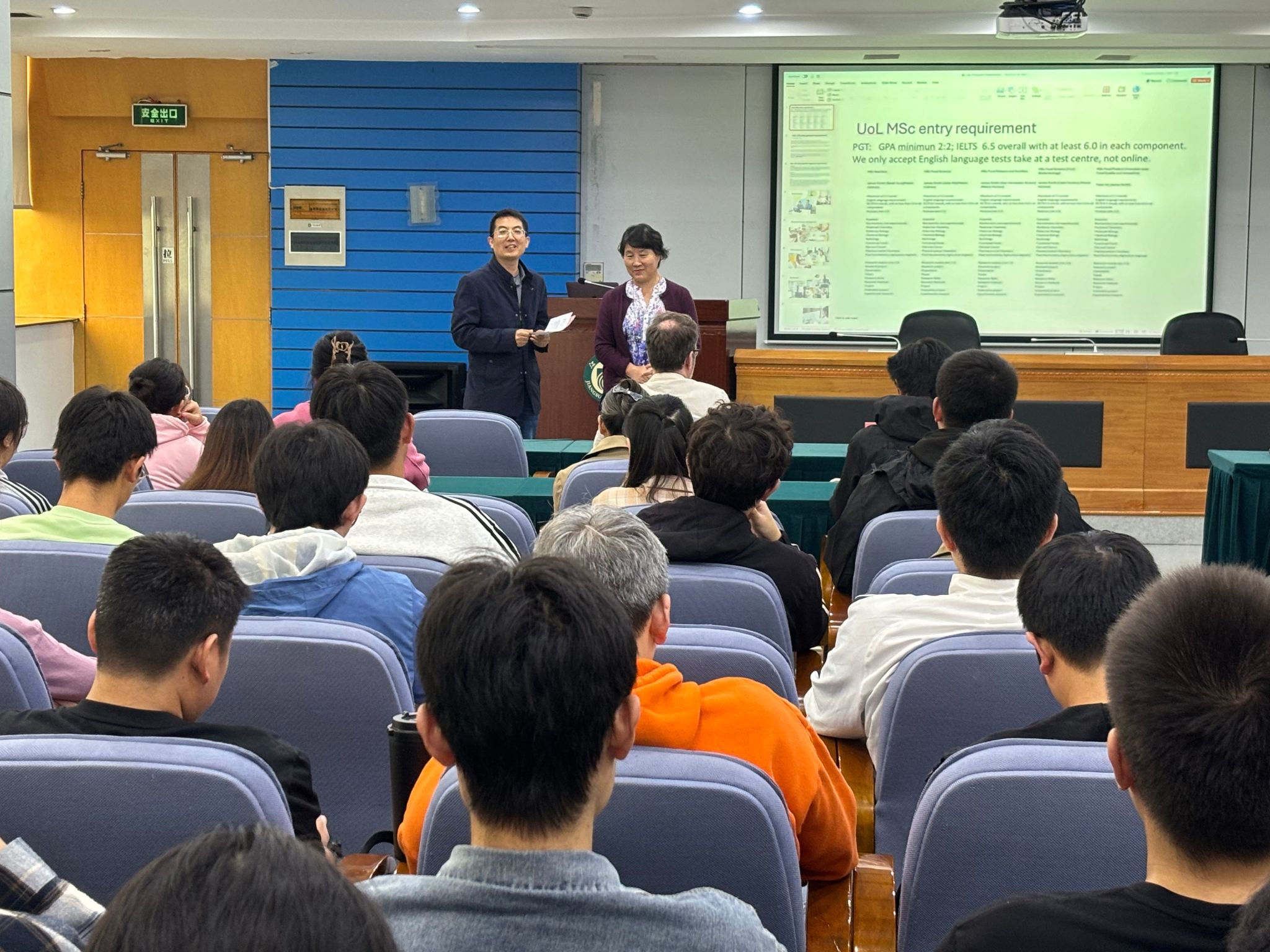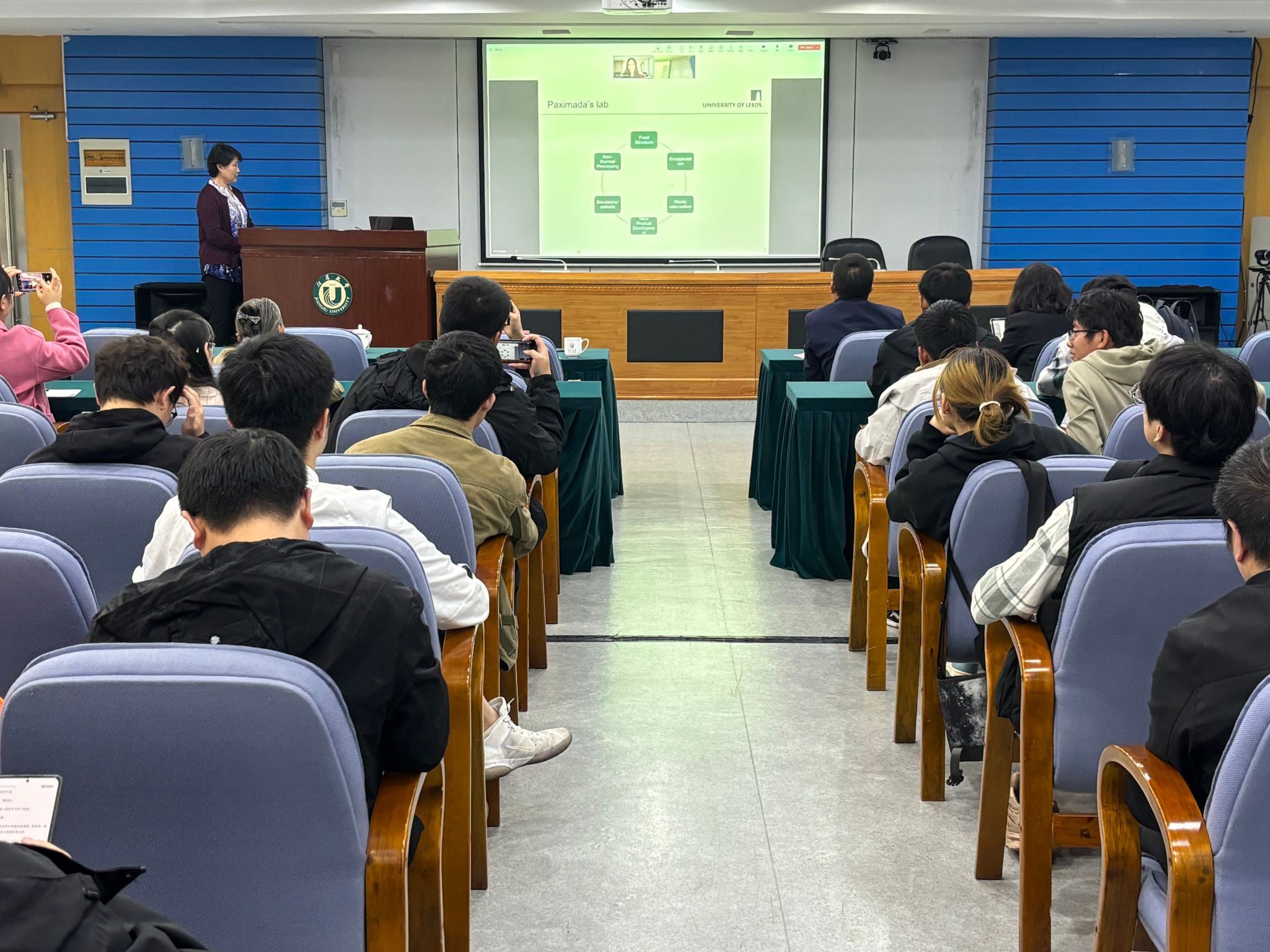 2024年11月1日下午,英国利兹大学国际处处长Julia Wang女士、英国利兹大学Gong Yunyun教授以及英国莱斯特大学Mike Routledge副教授到访食生学院。江苏大学国际处邹时建副处长、食生学院周存山副院长、食生学院本科生和研究生共80余人参加了此次活动。