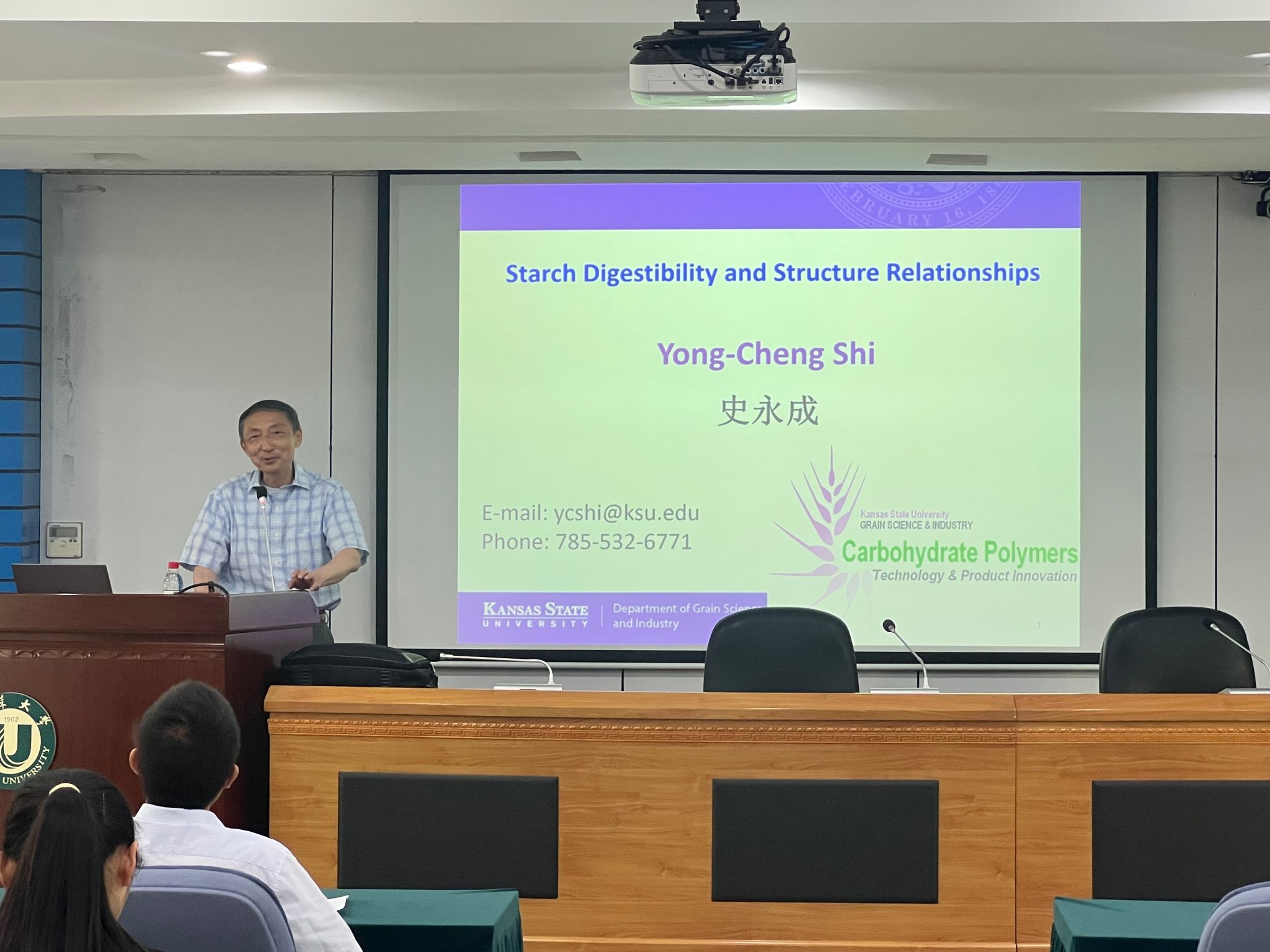 2024年6月14日上午,应bat365正版唯一官网的邀请,美国堪萨斯州立大学Yong-Cheng Shi(史永成)教授在会议中心第三报告厅进行了关于“淀粉的消化性与结构的关系”学术报告。报告由食生学院副院长周存山教授主持,吸引了众多教师、研究生和留学生参加。