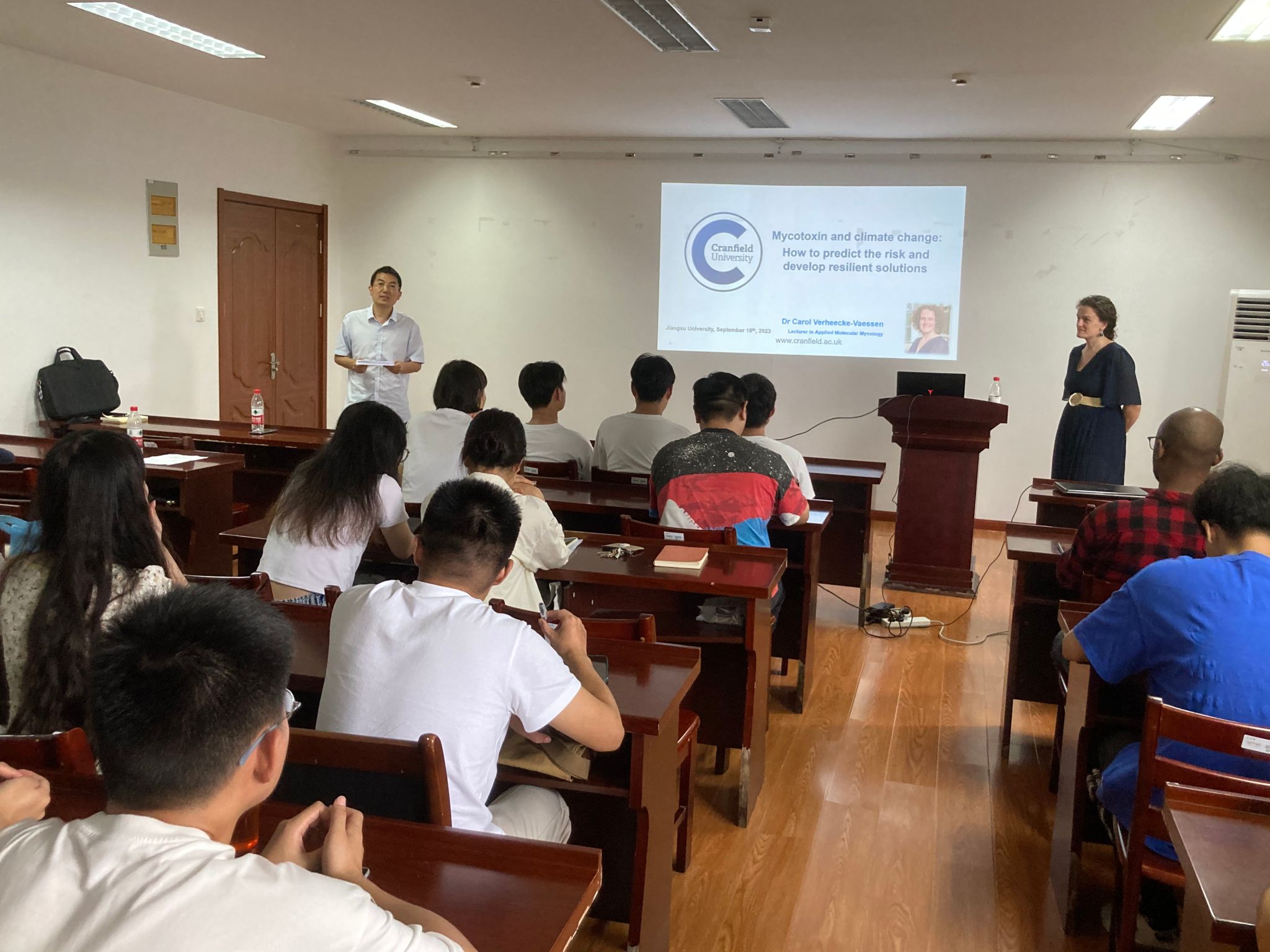 近日,应江苏大学食生学院的邀请,英国克兰菲尔德大学Carol Verheecke-Vaessen博士和赫特福德大学的Maria Esther Garcia-Cela博士在文楼506会议室进行了学术报告。报告由食生学院副院长周存山教授主持,学院共六十余位教师、研究生和留学生参加交流活动。