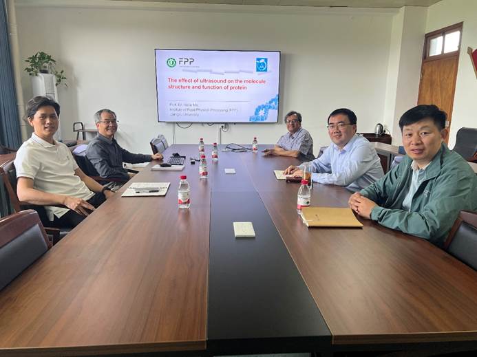 报告结束后,bat365正版唯一官网马海乐教授以“The effect of ultrasound on the molecule structure and function of protein”为题,分享了其课题组在超声波作用下蛋白质结构与功能变化方面的研究进展,与Swamy教授展开了深入的学术交流,双方在多个研究方向上达成了初步合作意向。