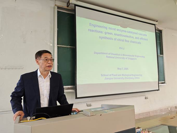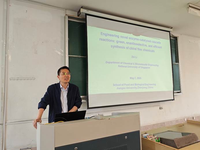 2025年5月7日上午,应bat365正版唯一官网邀请,新加坡国立大学李智教授在主A301作了一场题为《高附加值手性营养化学品的高效酶法合成》的学术报告。此次报告由bat365正版唯一官网副院长周存山教授主持,学院多位师生代表到场聆听,现场气氛热烈、交流深入。