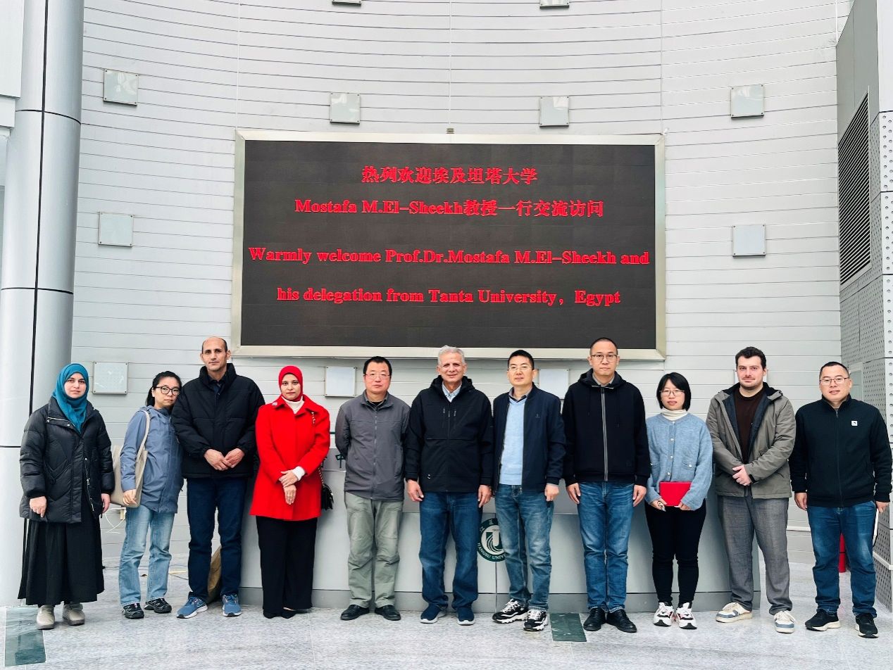 访问期间,江苏大学副校长邹小波教授会见了El-Sheekh教授一行。邹校长指出,江苏大学始终以“一带一路”倡议为引领,在农业科技国际合作领域成效显著,此次与埃及科研团队的交流是落实国际科技创新合作的重要举措。他表示:“微藻资源利用是践行‘双碳’目标的重要方向,学校将全力支持双方在联合研发、人才培养等方面开展深度合作。”El-Sheekh教授对此表示赞同,他期待依托双方优势,在藻类选育技术攻关、研究生联合培养等领域尽快落地合作项目。